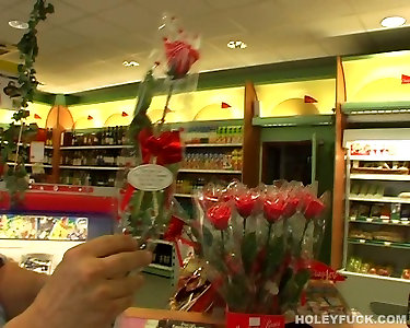 Youthful lusty dark haired Madlin Moon fellates and older pipe