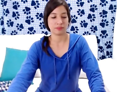 Cute and shy Chinese female flashes her globes and slit on web cam