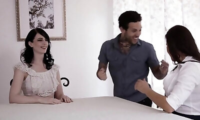 Three Way sex with busty Brooke Tyler and skinny babysitter