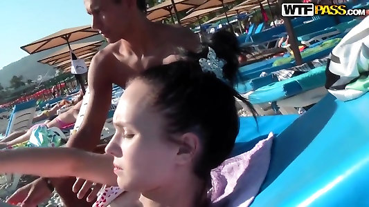 युगल जंगली हो जाता है और सार्वजनिक समुद्र तट पर यौन संबंध है
