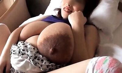 Lusty amateur preggo plays with her awesome big boobies vigorously