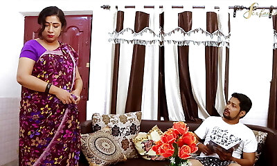 Son in bed with busty stepmom. She thinks it's her spouse at first. He fondled and fucked her