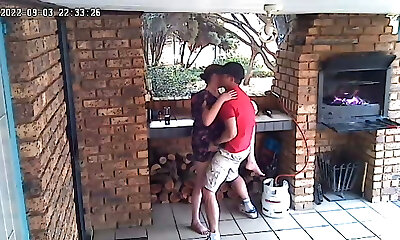 Spycam: CC TV self catering accomodation couple fucking on front porch of nature reserve