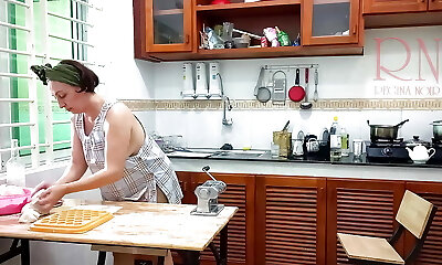 Ravioli Time! Naked Cooking. Regina Noir, a nudist cook at nudist hotel resort. Naked maid. Naked housewife. Camera 1