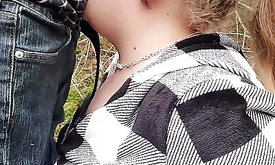 Cute bbw in glasses deepthroat blowjob doggystyle cumshot on butt in public outdoor